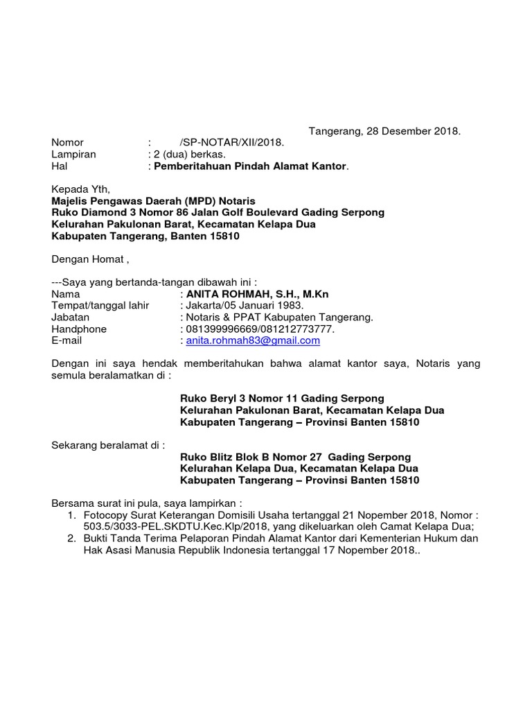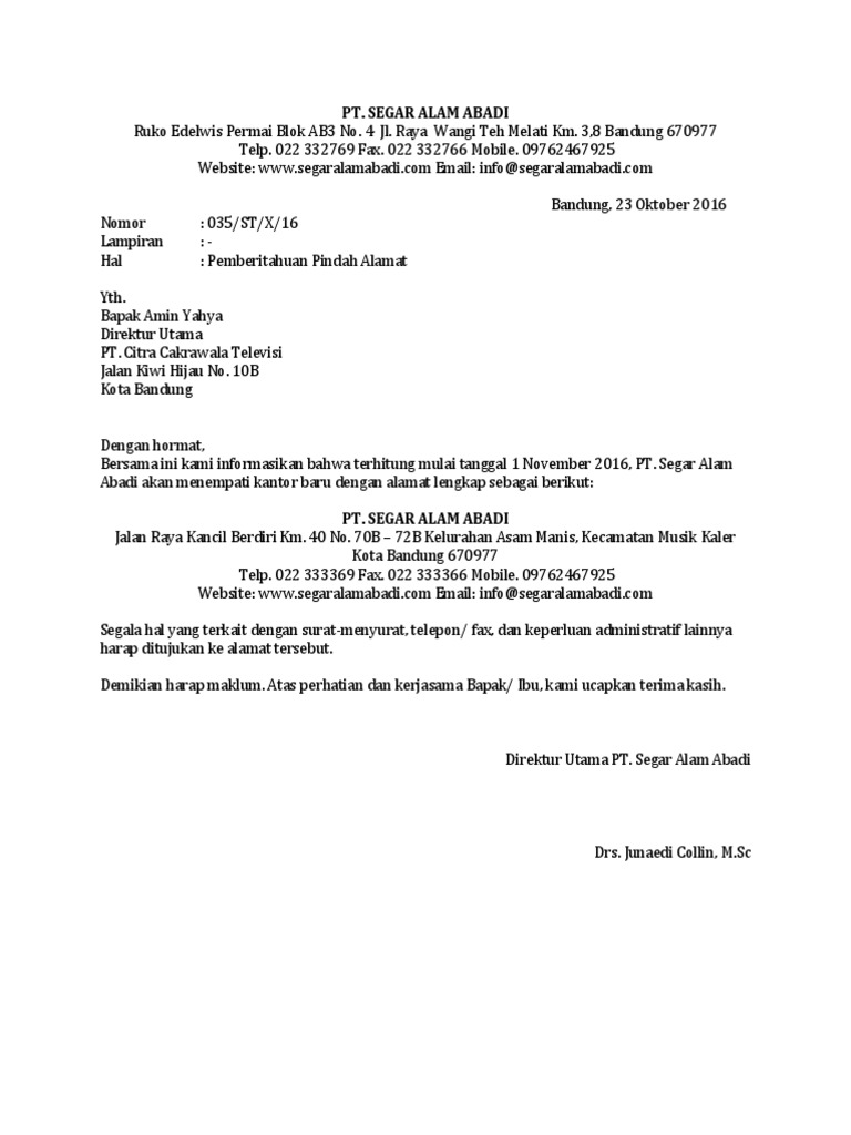 Contoh Surat Pemberitahuan Pindah Alamat Kantor Yang Masih Dalam Kota Pdf