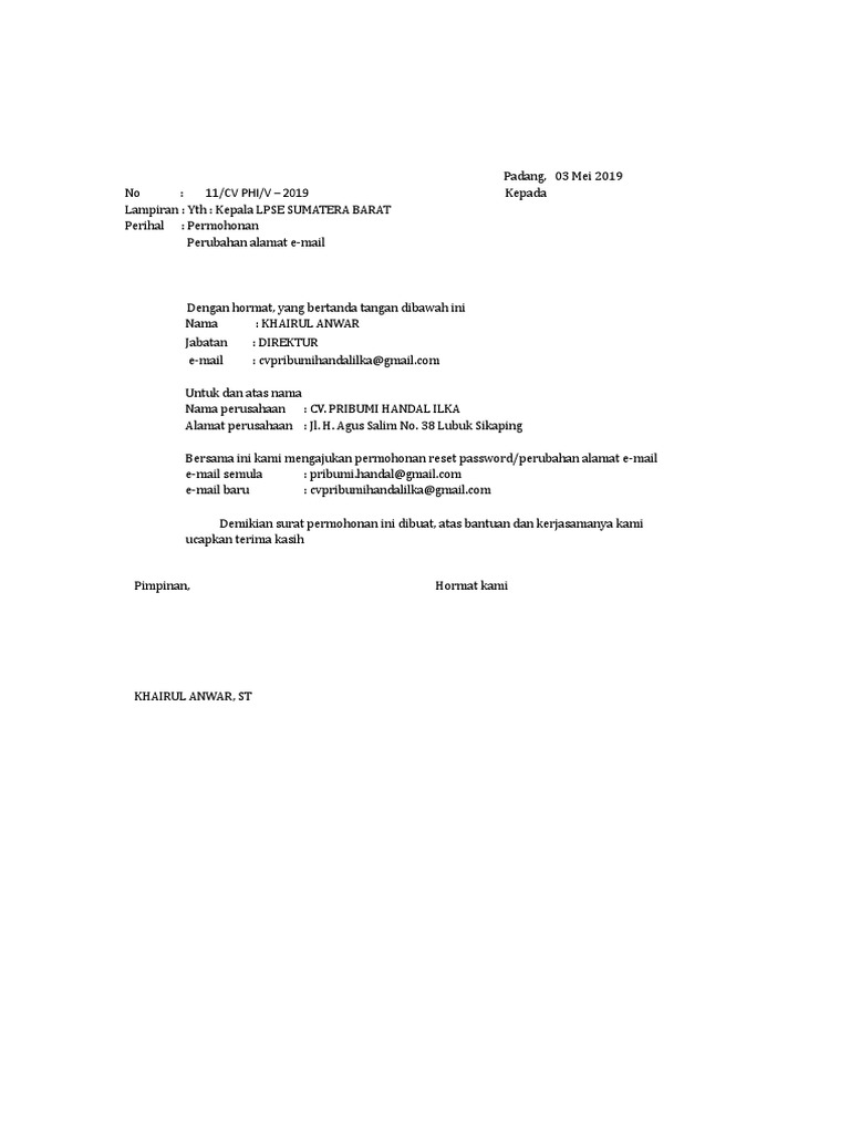 Template Surat Permohonan Perubahan Alamat Email Pdf